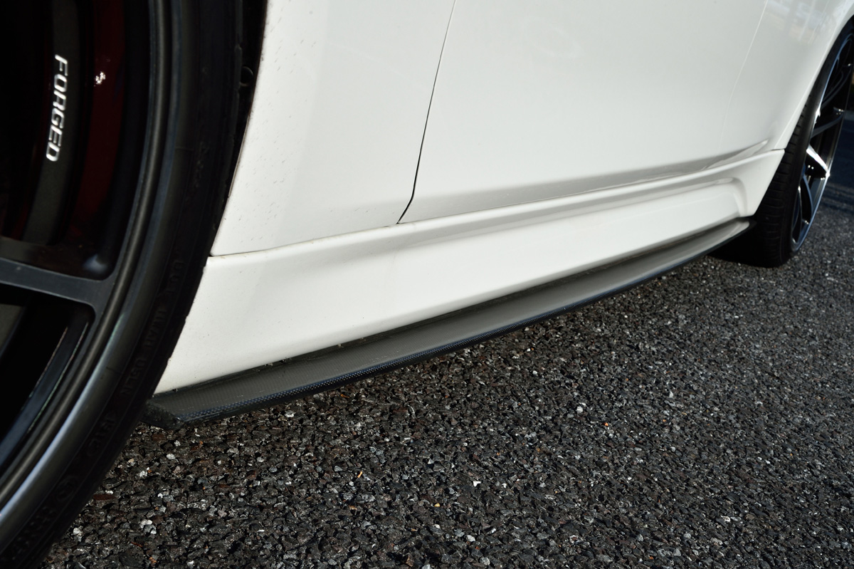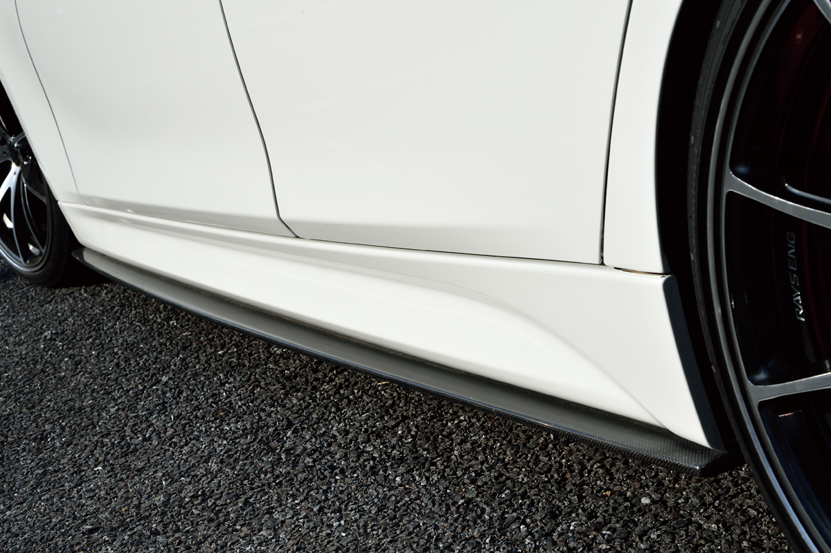 フロントリップスポイラーからの繋がりをコーディネート。腰高な印象になりがちなサイド部を落ち着かせると共に、整流効果を高めます。