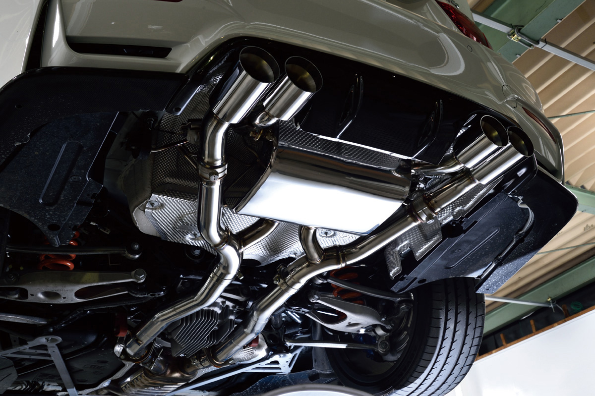 幾度とテストを繰り返し開発を行なったHYPER STYLE オリジナルのステンレスマフラー。トルクの向上はもちろん、M3のパワーを持て余すこと無くドライブフィーリングやエギゾーストサウンドを高めます。バルブ開閉システムを搭載し、排気効率、音量、トルクの調節が可能です。