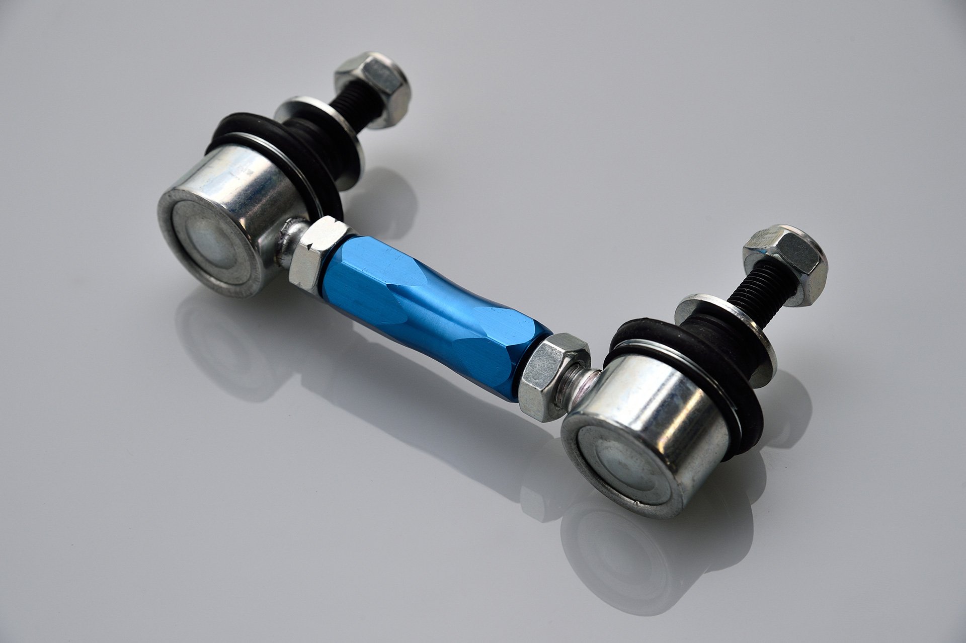 車高を下げることによるスタビライザー作動位置変化を修正して、スタビライザー本来の動作に戻します。また、純正のリンクロッドより強度が上がるので、耐久性の向上を実現しています。